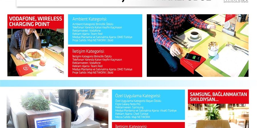 VODAFONE | WIRELESS CHARGING POINT | A AWARDS AMBIENT KATEGORİSİ BİRİNCİLİK ÖDÜLÜ VODAFONE | WIRELESS CHARGING POINT | A AWARDS ILETISIM KATEGORISI BİRİNCİLİK ÖDÜLÜ SAMSUNG | FİŞTE GALAXY NOTE PRO | A AWARDS ÖZEL UYGULAMA KATEGORİSİ BAŞARI ÖDÜLÜ SAMSUNG | FİŞTE GALAXY NOTE PRO | A AWARDS İLETİŞİM KATEGORİSİ BAŞARI ÖDÜLÜ