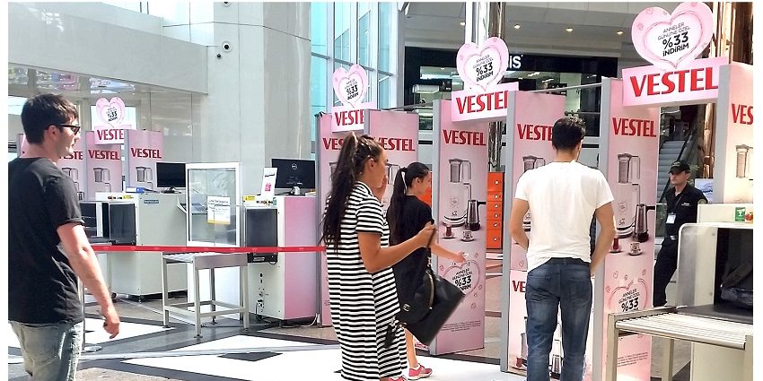 Anneler günü yaklaştıkça özel gün için alınacak hediye telaşıyla Alışveriş Merkezini ziyaret edenlere, Vestel annelerine en özel hediyeyi indirimle alabileceklerini AVM girişlerindeki xray cihazlarını giydirerek kapılardan duyurmuştur.
